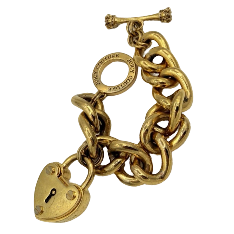 Vintage Juicy Couture Gold Charm Bracelet with Heart Lock