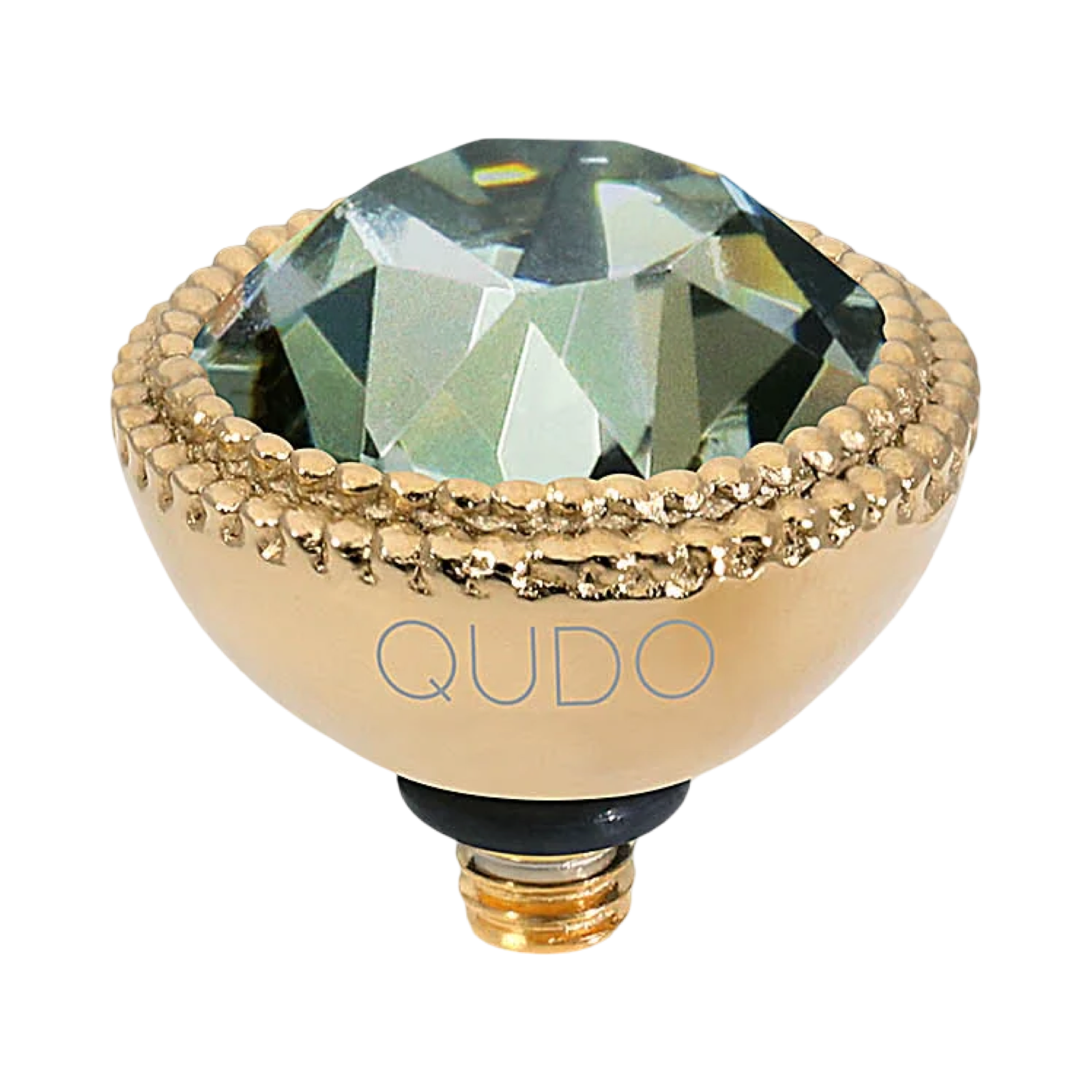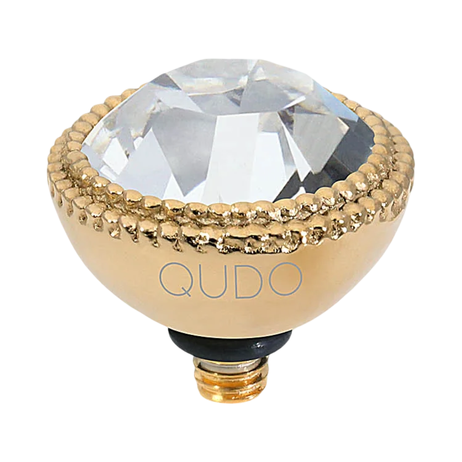 The Qudo Fabero Interchangeable Topper combines elegance, brilliance, and versatility. Handcrafted in Germany with a precision-cut Swarovski® crystal, each Fabero topper glows with multi-dimensional sparkle — perfectly framed by a smooth, rounded setting of polished stainless steel or radiant 18K gold plating.